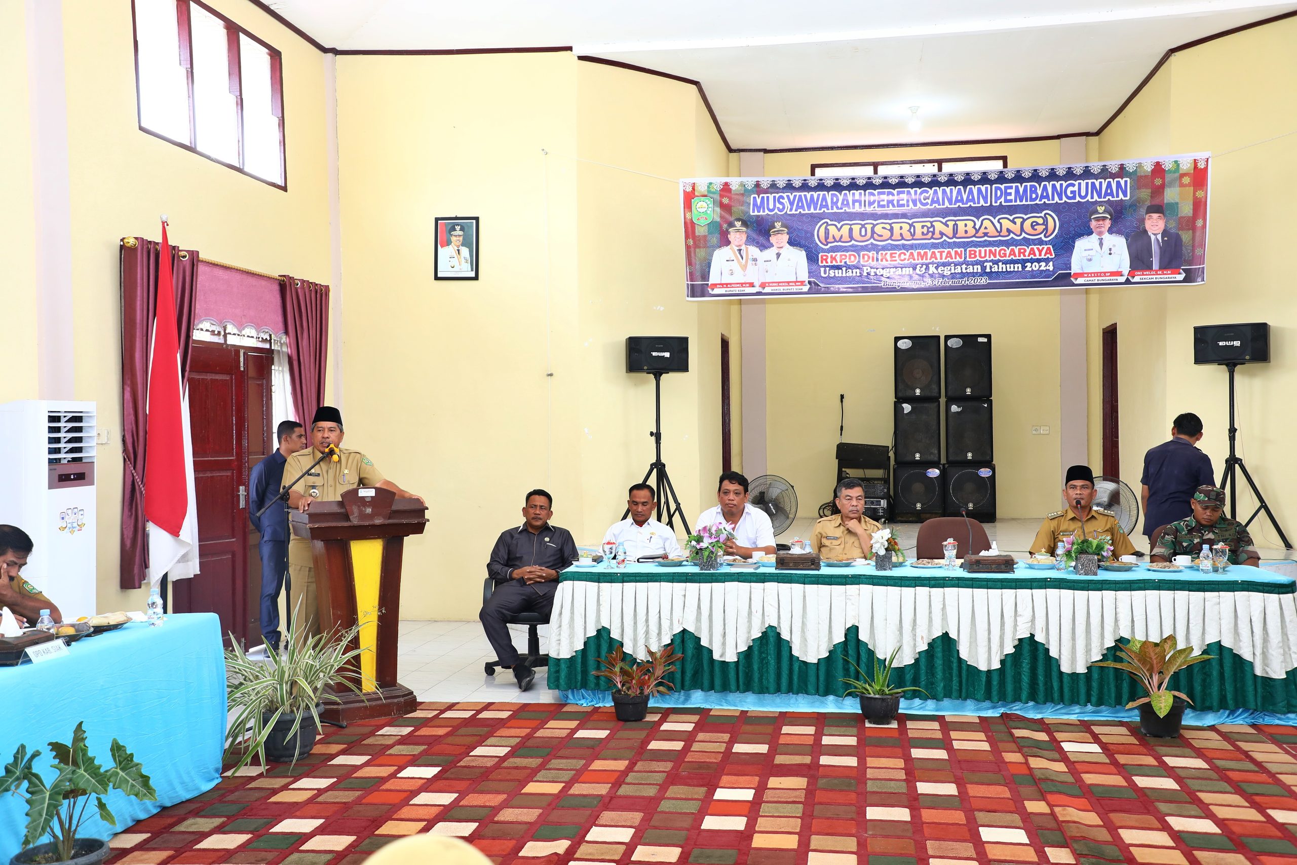 SIAK–Bupati Siak Alfedri menghadiri sekaligus membuka secara langsung Musyawarah Perencanaan Pembangunan Rencana Kerja Pemerintah Daerah (Musrenbang RKPD) Kecamatan Bungaraya, dalam rangka Ppengusulan program dan kegiatan pemerintah kecamatan Bungaraya tahun 2024.