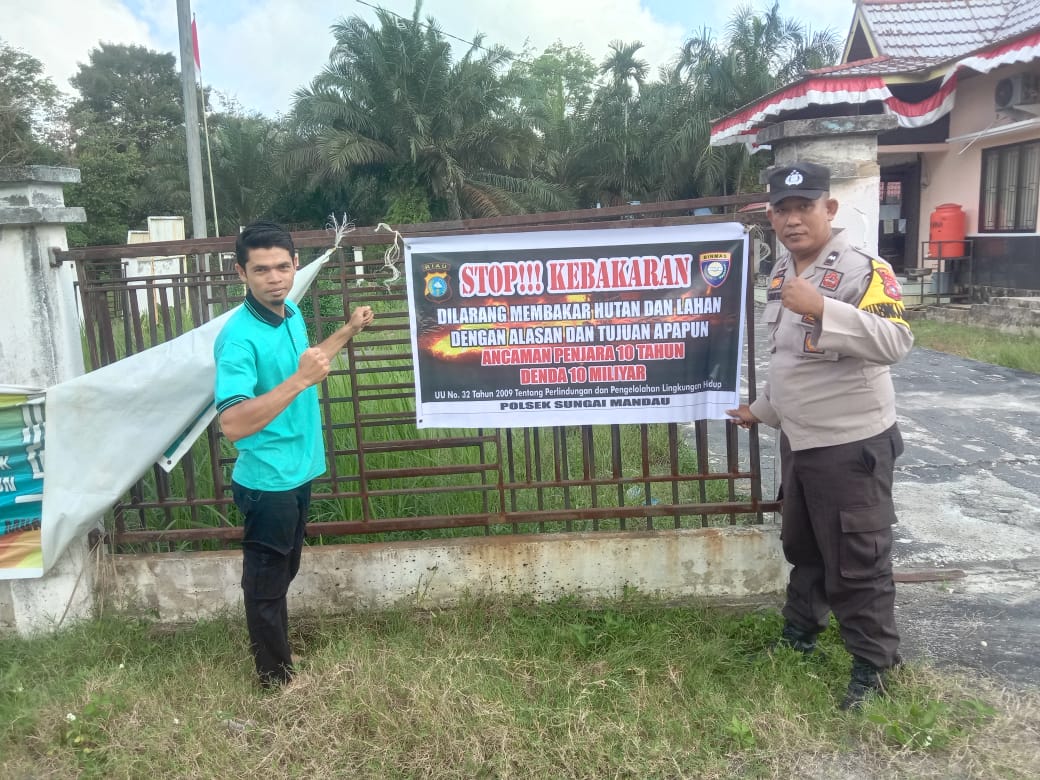 “Kecamatan Sungai Mandau memiliki tingkat kerawanan karhutla yang cukup tinggi karena sebagian lahan gambut, maka salah satunya dengan menghimbau masyarakat untuk tidak melakukan pembakaran melalui pasang spanduk, agar dapat diketahui dan dipahami oleh masyarakat Kec. Sei Mandau”, kata Kapolsek.