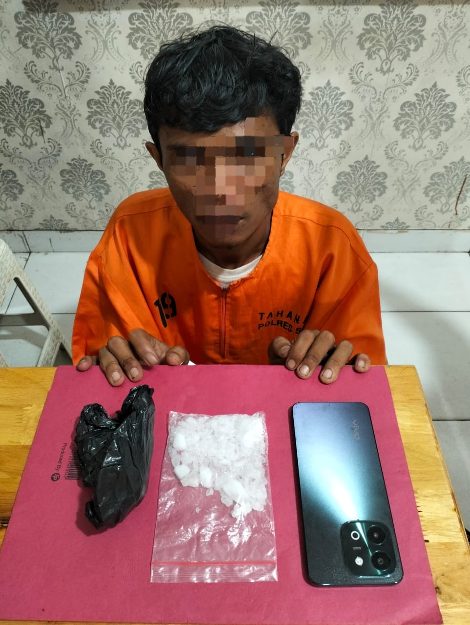 SIAK, Satuan Reserse ( Satres ) Narkoba Polres Siak Polda Riau menangkap Satu orang pria diduga pelaku tindak pidana penyalahgunaan narkotika diduga jenis shabu di