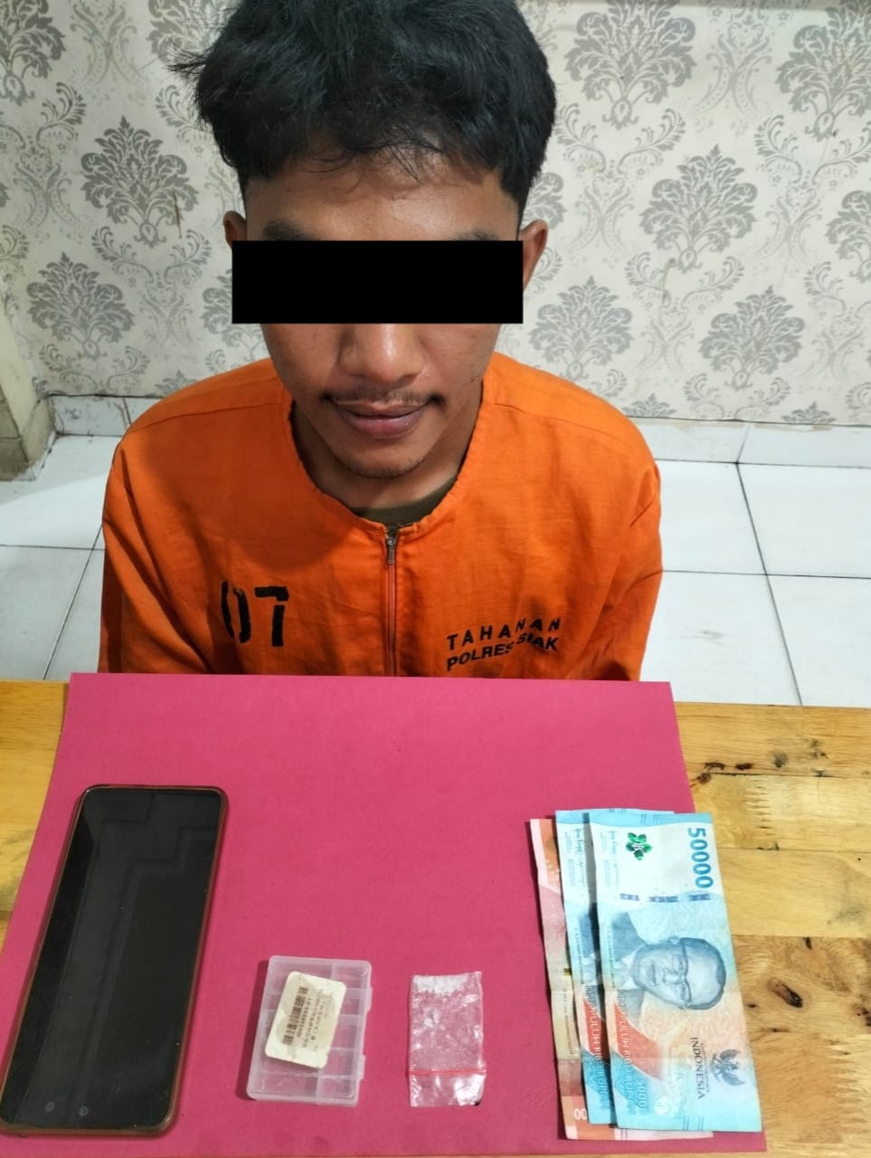 “Hasil penangkapan, satu tersangka, berinisial FA (22), pelajar/mahasiswa asal Siak, ditangkap dengan barang bukti 0,42 gram narkotika jenis Shabu. Tersangka mengakui bahwa barang bukti tersebut miliknya dan dia memperoleh narkotika dari Sdr. Adi (DPO).” Tutup AKP Tony Armando.