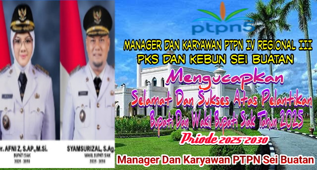 Homepage/SiakManager Dan Karyawan PTPN IV Regional III Kebun Dan PKS Sei Buatan Mengucapkan Selamat Dan Sukses Atas Pelantikan Bupati Dan Wakil Bupati Siak Priode 2025-2030