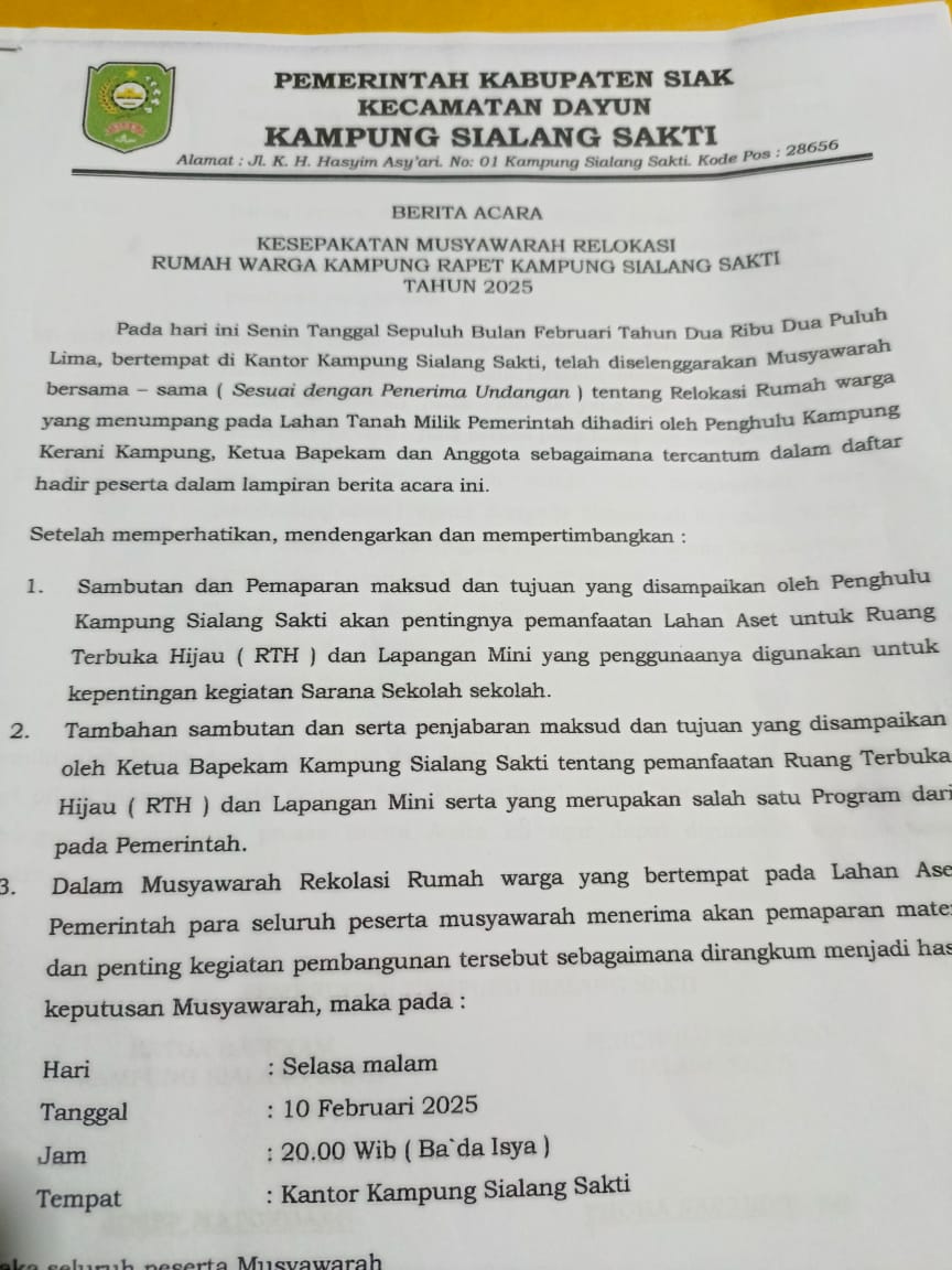 “Ditahun ini akan di bangun Ruang terbuka hijau dan lapangan mini di Kampung Sialang Sakti,” ujar Penghulu Sialang Sakti Thoha Nasrudin kepada media Jumat (8/8/2025).