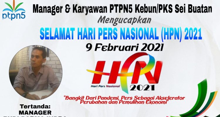 Manager dan Karyawan PTPN V Kebun/PKS Sei Buatan Mengucapkan Selamat( HPN) Siak|Selasa , 9 Februari 2021Rabu , 10 Februari 2021oleh Fitriadi