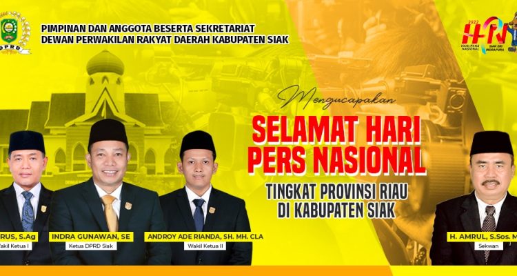 Pimpinan dan Anggota DPRD Siak Berserta sekertariat Mengucapkan Selamat Hari HPN 2022 DPRD Siak, Siak|Minggu , 20 Maret 2022Jumat , 1 April 2022oleh Fitriadi