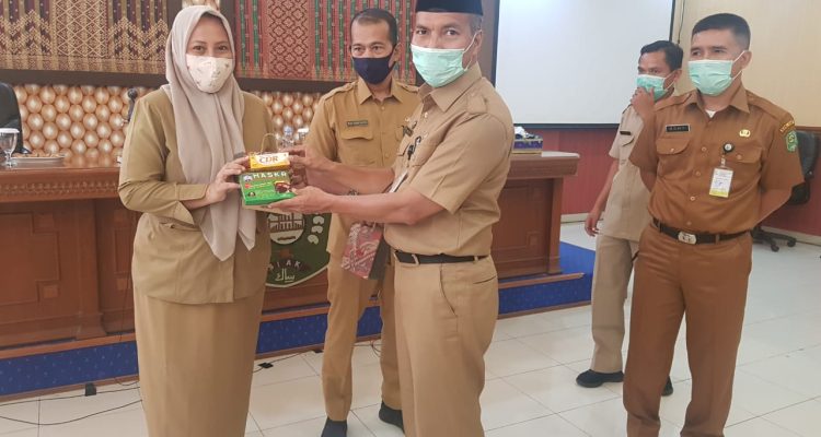 SIAK-Penjabat Sekda Siak Jamaluddin menyerahkan secara simbolis masker kepada Aparatur Sipil Negara (ASN) dilingkungan Sekretariat