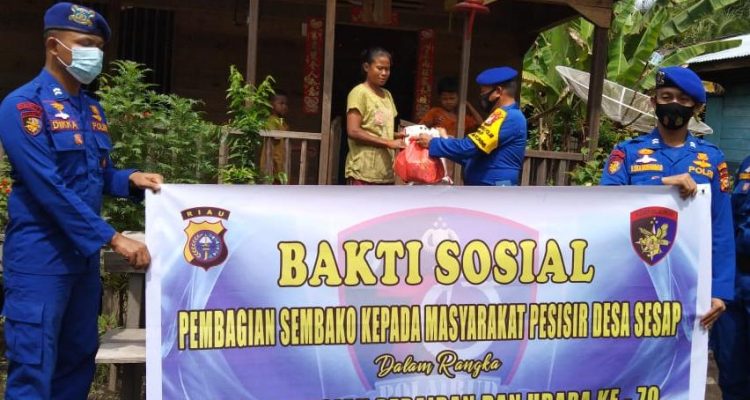 SELATPANJANG – Satuan Polisi Perairan (Satpolair) Polres Kepulauan Meranti membagikan puluhan paket sembako kepada masyarakat