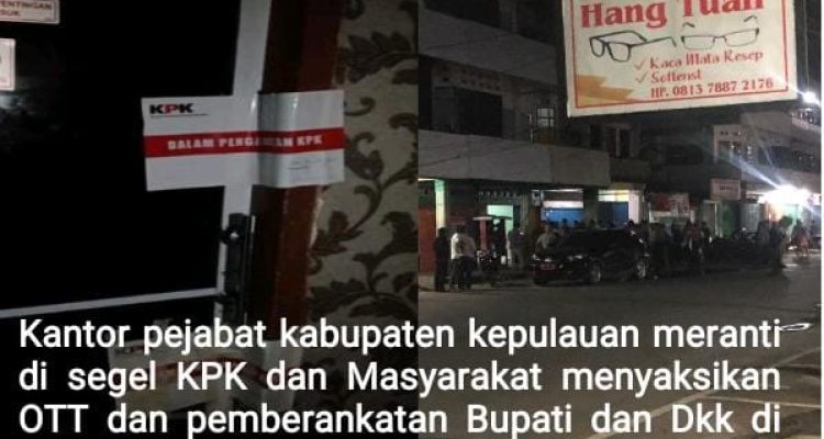 Meranti, Mandiri Pos-Komisi Pembarantasan Korupsi (KPK) melakukan penangkapan ke Bupati dan Staf di kabupaten kepulauan