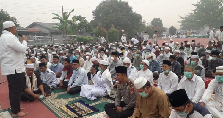 PERAWANG,MANDIRIPOS.COM-Sholat Istisqo (Sholat Minta Hujan) yang di laksanakan masyarakat kecamatan Tualang, Minggu (22/9/2019) pagi berjalan