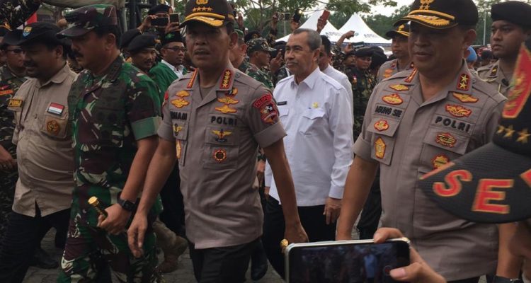 Pekanbaru. Kapolri, Jenderal Pol Idham Aziz dan Panglima TNI Marsekal Hadi Tjahjanto tiba di