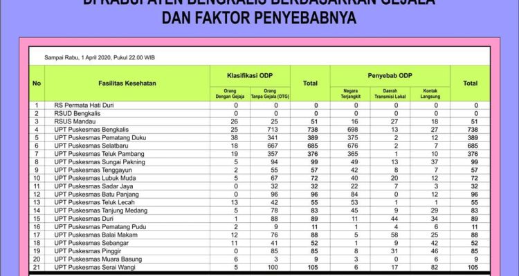 BENGKALIS – MANDIRI POS, Sampai Rabu, 1 April 2020, pukul 22.00 WIB, sesuai data yang