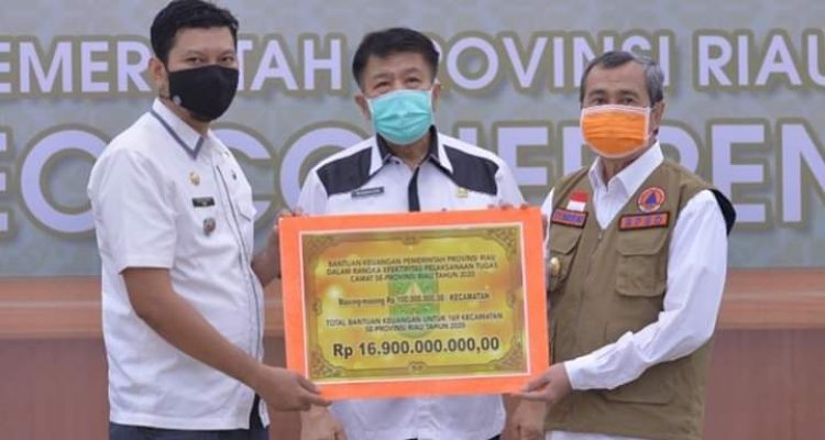 SIAK-Penjabat Sekretaris daerah Kabupaten Siak Jamaluddin menyaksikan acara penyerahana bantuan keuangan dari pemerintah Provinsi Riau