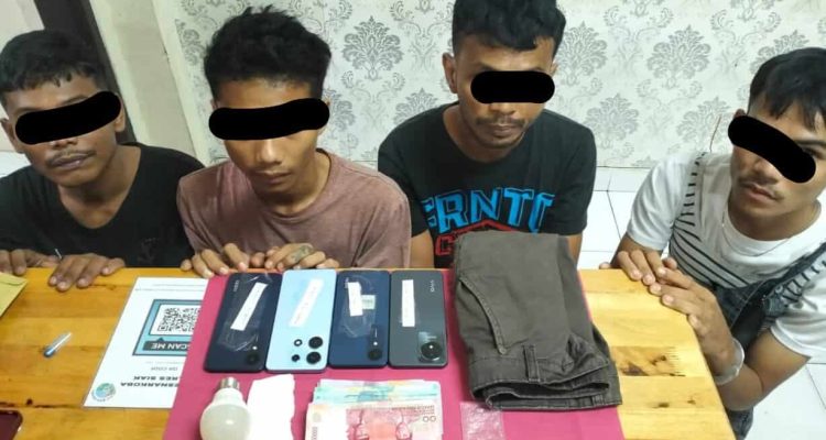 Tim Opsnal Satres Narkoba Polres Siak Amankan Empat Orang Pria Diduga Pelaku Penyalahgunaan Narkotika.
