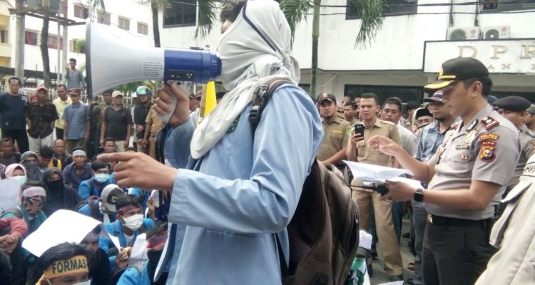 ROHIL, Mandiripos.com- Puluhan mahasiswa asal Rokan Hilir melakukan unjuk rasa di depan kantor DPRD Rohil,