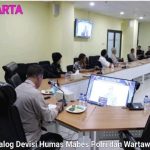 Organisasi Persatuan Wartawan Indonesia (PWI) mengikuti Virtual Zoom Meeting Dialog Publik dari Mabes Polri bertempat di ruang Rapat Kapolres di Lantai 3, Mapolres Metro Bekasi Kota, Jalan Pangeran Jayakarta, Medan Satria, Kota Bekasi, Rabu (31/05/ 2023).