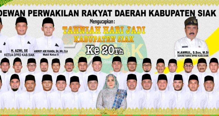 DPRD Kabupaten Siak Mengucapkan Tahniah Hut Kabupaten Siak Ke 20 DPRD Siak, Siak|Jumat , 11 Oktober 2019oleh Fitriadi