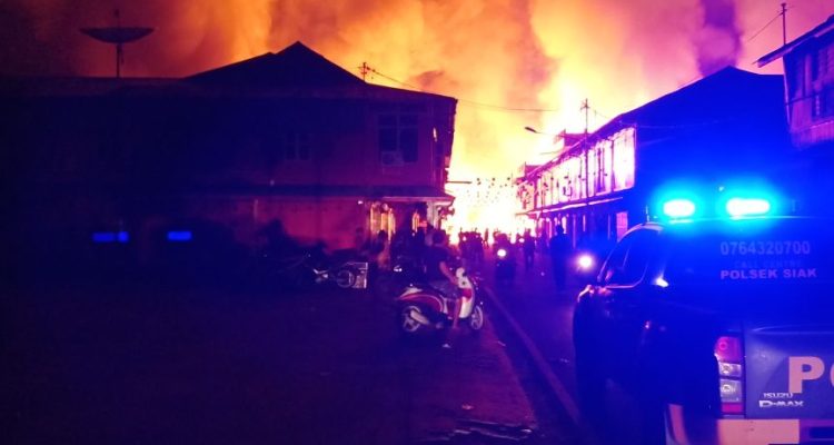SIAK,Mandiripos.com – Warga Siakdikejutkan dengan kobaran api yang tiba-tiba melalap dua blok ruko China Town, Sabtu (17/2/2018)