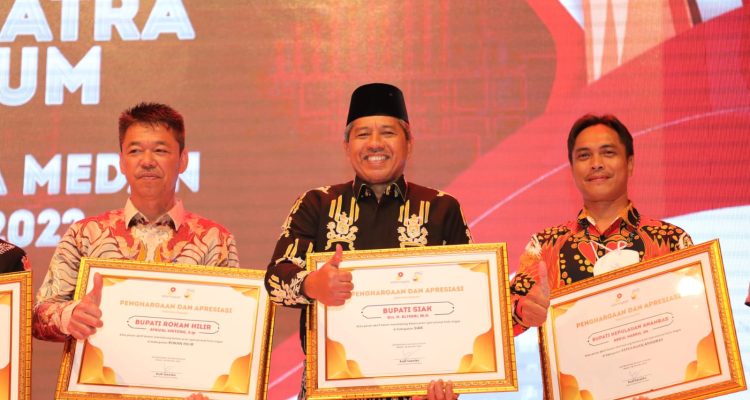 SIAK-SKK Migas Sumbagut menyerahkan penghargaan kepada Pemda kabupaten Siak, yang berhasil dalam mengawal kelancaran operasional
