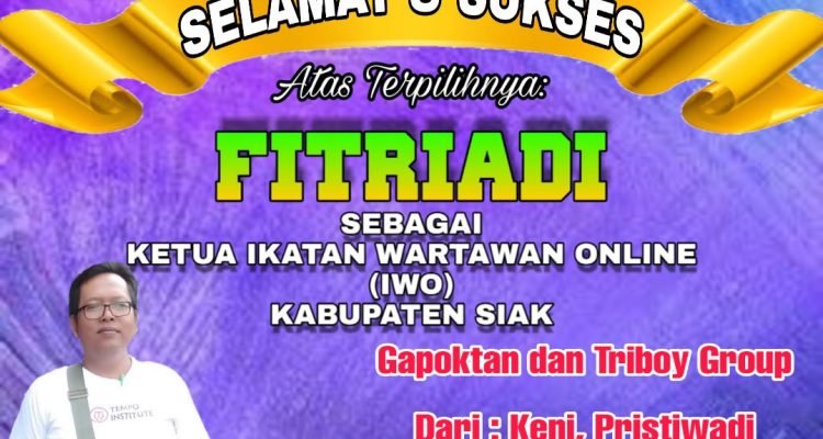 Gapoktan Dan Triboy Group Mengucapkan Selamat Dan Sukses Atas Terpilihnya Fitriadi Sebagai Ketua IWO Kab Siak Siak|Jumat , 6 Desember 2019oleh Fitriadi