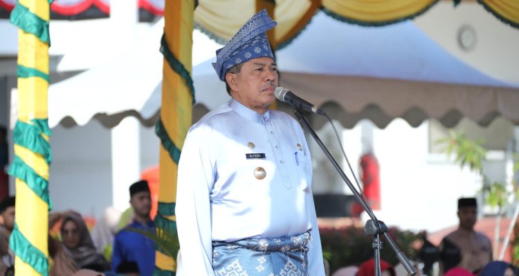 SIAK-Bupati Siak Alfedri menjadi pembina pada Upacara Peringatan Hari Jadi Provinsi Riau ke – 66 tahun 2023, di halaman Kantor Bupati Siak, Kecamatan Mempura, Rabu (9/8/2023).