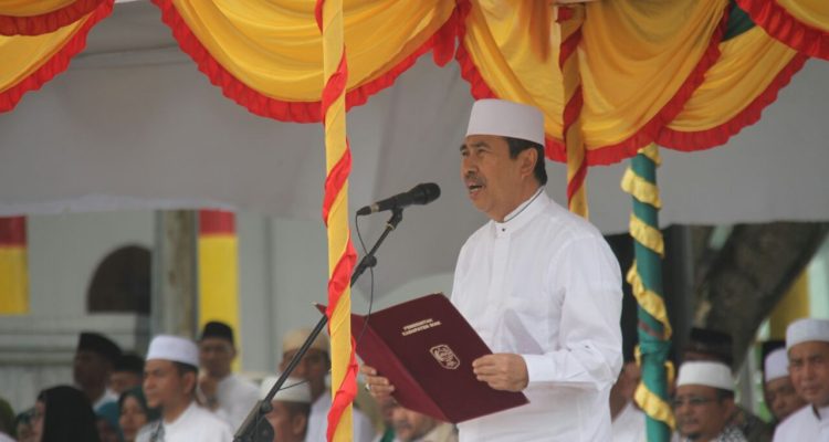 SIAK,Mandiripos.com-Ribuan santri se Riau padati lapangan Tugu depan Istana Siak untuk melaksanakan upacara peringatan Hari