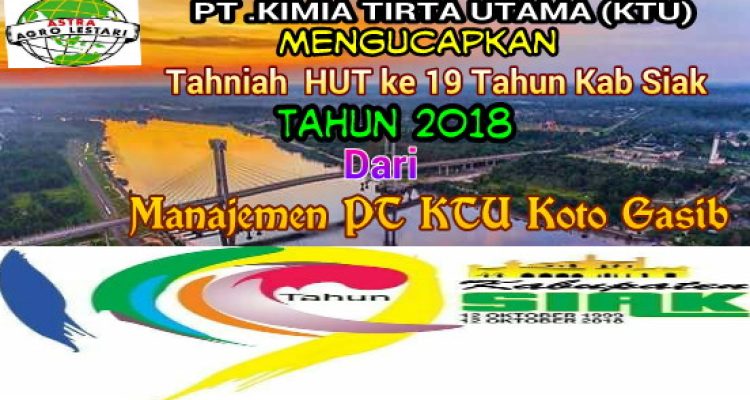 Manajemen PT KTU Mengucapkan Tahniah HUT Kab Siak Ke 19 Tahun 2018 Siak|Kamis , 11 Oktober 2018oleh Fitriadi