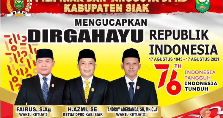 Pimpinan Dan Anggota DPRD Kabupaten Siak Mengucapkan Dirgahayu RI Ke 76 DPRD Siak, Siak|Selasa , 17 Agustus 2021Minggu , 12 September 2021oleh Fitriadi