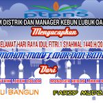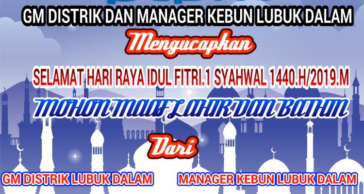 GM Distrik Dan Manager Kebun Lubuk Dalam Mengucapkan Selamat Hari Raya Idul Fitri 1440 .H Siak|Selasa , 4 Juni 2019oleh Fitriadi