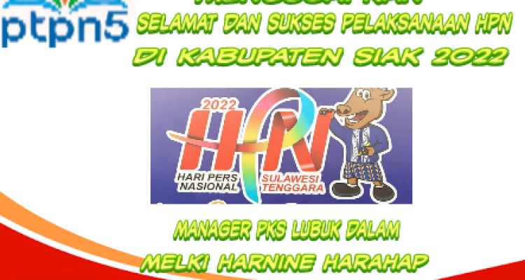 Manager dan Karyawan PKS Ptpn5 Lubuk Dalam Mengucapkan Selamat dan Sukses HPN Kab Siak 2022 Siak|Jumat , 18 Maret 2022oleh Fitriadi