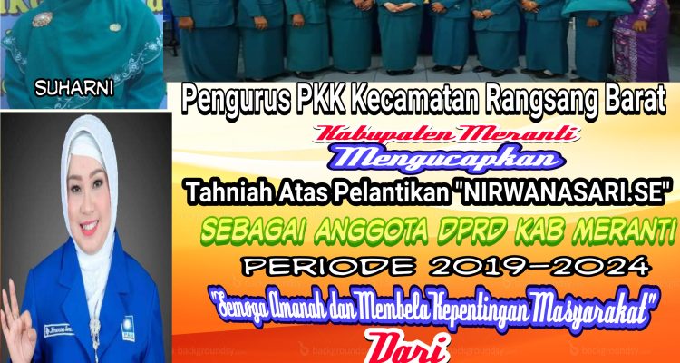 Pengurus PKK Kecamatan Rangsang Barat Mengucapkan Tahniah Pelantikan “Nirwanasari.SE “Sebagai Anggota DPRD Meranti Kepulauan Meranti|Senin , 16 September 2019Senin , 16 September 2019oleh Fitriadi