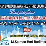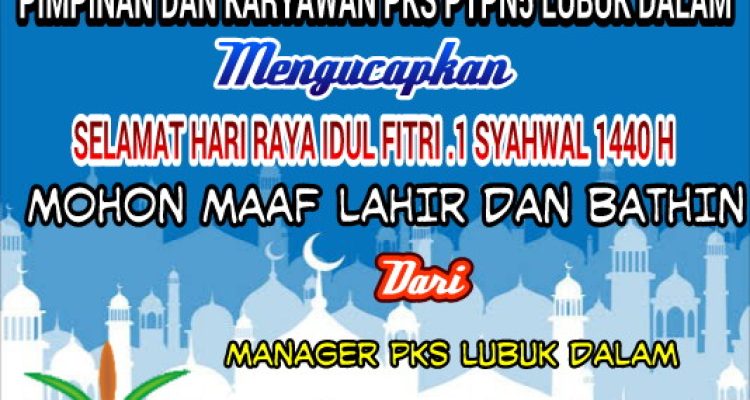 Pimpinan Dan Karyawan PKS PTPN5 Lubuk Dalam Mengucapkan Selamat Hari Raya Idul Fitri 1440 .H Siak|Selasa , 4 Juni 2019oleh Fitriadi