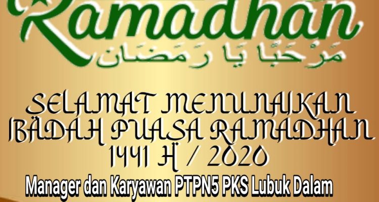 Manager dan Karyawan PTPN5 PKS Lubuk Dalam Mengucapkan Selamat Menyambut Bulan Suci Ramadhan Siak|Selasa , 14 April 2020oleh Fitriadi