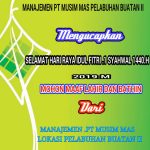Manajemen PT Musim Mas Pelabuhan Buatan II Mengucapkan Selamat Hari Raya Idul Fitri 1440.H Siak|Selasa , 4 Juni 2019oleh Fitriadi