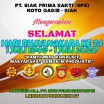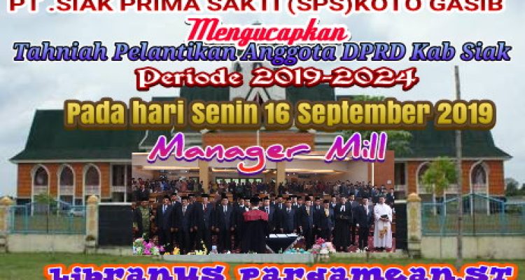Manager PT SPS Mengucapkan Tahniah HUT Kab Siak Ke 19 Tahun 2018 Siak|Jumat , 12 Oktober 2018oleh Fitriadi