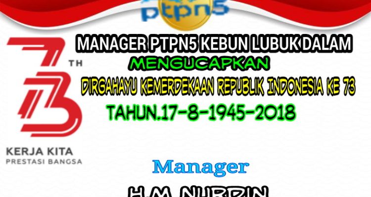 Manager PTPN5 Kebun Lubuk Dalam Mengucapkan Dirgahayu HUT RI Ke 73 Siak|Jumat , 17 Agustus 2018oleh Fitriadi