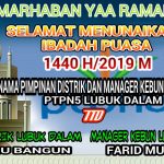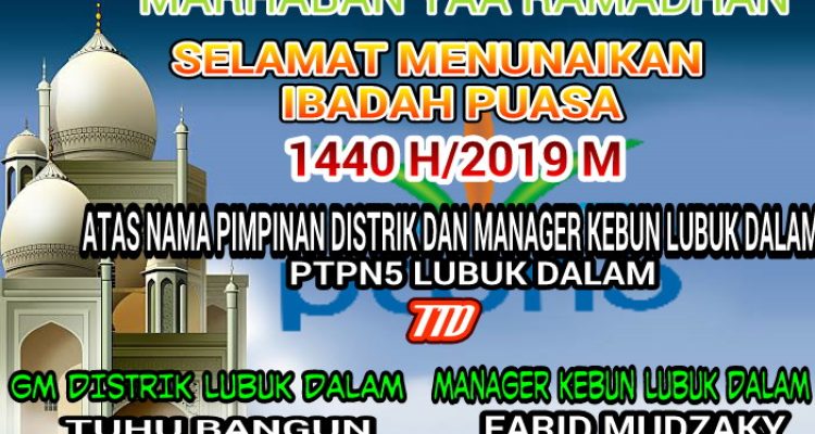 GM Distrik dan Manager Kebun Lubuk Dalam Mengucapkan Selamat Menunaikan Ibadah Puasa 1440 H/2019 Siak|Kamis , 2 Mei 2019oleh Fitriadi