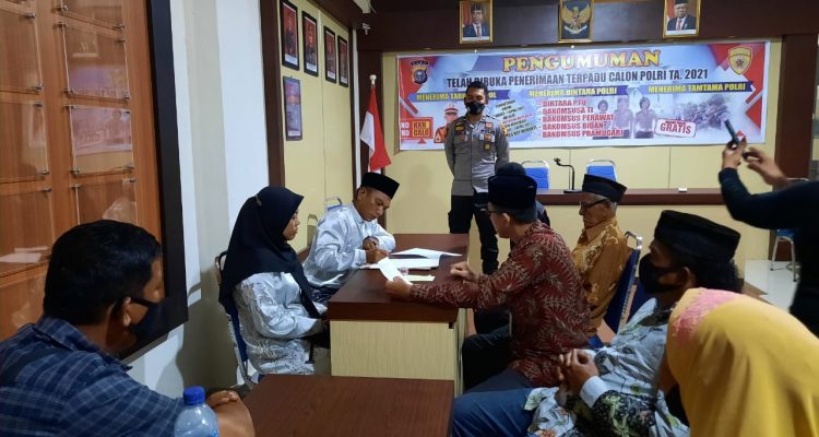 SELATPANJANG – Sepasang pengantin melangsungkan pernikahan di Mako Polres Kepulauan Meranti, Kamis (8/4/2021) siang. Mempelai