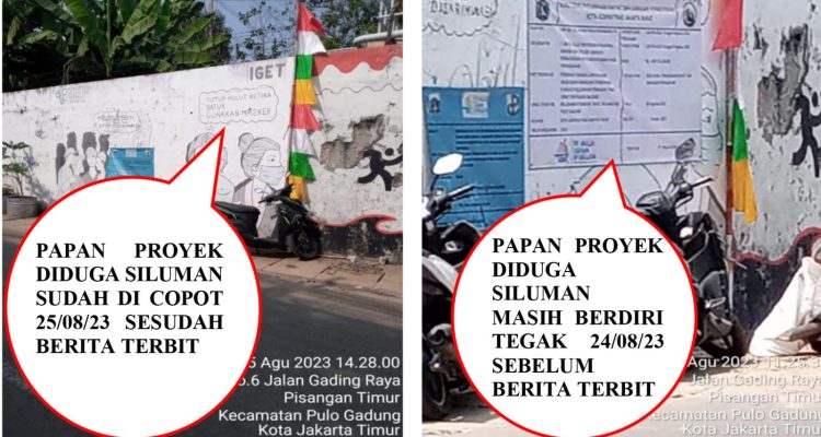 Jakarta, Mandiri Pos-Setelah terbit pemberitaan tentang Dugaan Papan Nama Proyek U-Ditch Sudin PRKP Jakarta Timur “Kesurupan” pihak terkait langsung turun ke lapangan dan menurunkan langsung Papan Proyek tersebut, tanpa ada tindakan ke pihak PT. Mulia Graha Parulian, yang sudah membuat informasi kegiatan yang sudah dilaksanakan di lapangan yang dinilai tanpa pengawasan pihak terkait dalam pelaksanaan kegiatan proyek tersebut.