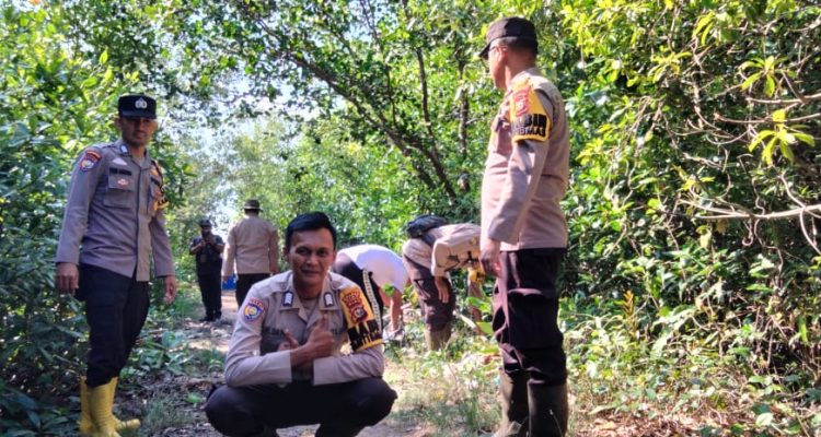 SUNGAI APIT-Jajaran Polsek Sungai Apit melaksanakan Kerja bakti ini dilakukan setelah ada tumpukan sampah di Jalan yang menuju Mangrove Sungai Bersejarah di kampung Kayu Ara Permai Kecamatan Sungai Apit.