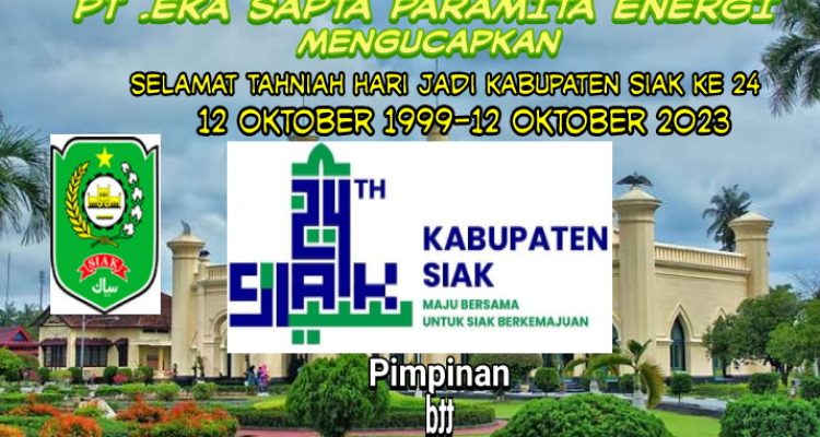 PT Eka Sapta Paramita Energi Mengucapkan Selamat Tahniah Hari Jadi Kabupaten Siak Ke 24 Tahun Siak|Senin , 9 Oktober 2023oleh Fitriadi