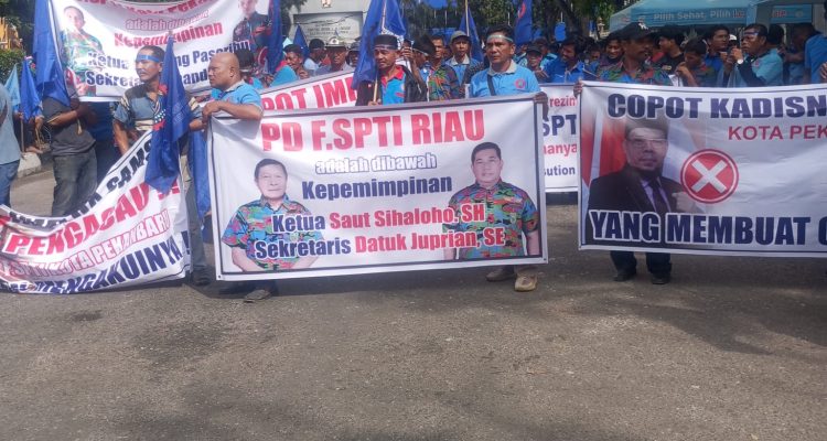 PEKANBARU – Dinilai berlaku deskriminatif ribuan buruh yang berasal dari sejumlah kabupaten kota sepropinsi Riau, yang tergabung dalam Pengurus Daerah (PD), Federasi Serikat Pekerja Transportasi Indonesia (FSPTI) Provinsi Riau mendesak Gubernur Syamsuar untuk mencopot Kepala Dinas Tenaga Kerja dan Transmigrasi (Kadisnakertrans) Provinsi Imron.