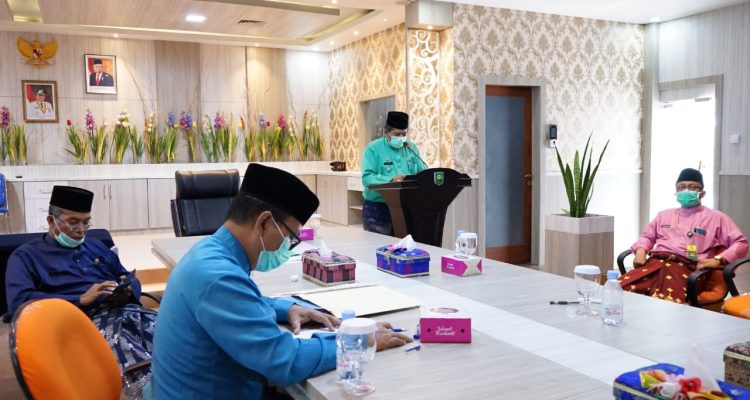 SIAK-Bupati Siak Alfedri hari ini, Senin (27/7/2020) mengikuti rapat virtual paripurna Badan Anggaran (Banggar) Dewan