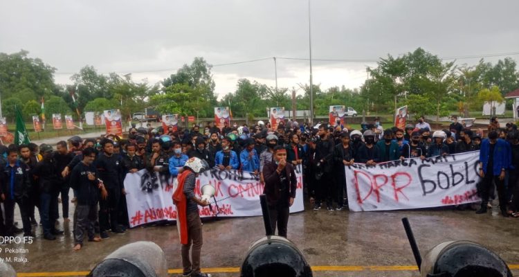 Rokan Hilir-Puluhan Mahasiswa dari berbagai perguruan tinggi Riau asal kabupaten Rohil melakukan unjukrasa menolak Omnibus