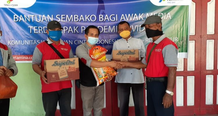 ROHIL– SKK Migas Pertamina Hulu Energi ( PHE ) Siak menyalurkan 40 paket Sembako kepada
