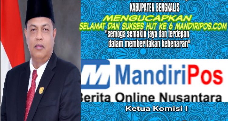 Ketua Komisi I DPRD Bengkalis Mengucapkan Selamat Hut ke 6 Mandiripos.com Bengkalis, DPRD Bengkalis|Selasa , 14 September 2021oleh Fitriadi