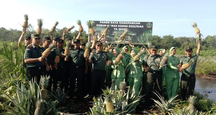 SIAK- Dalam rangka mengoptimalkan program pemerintah daerah bidang ketahanan pangan di wilayahnya, Kodim 0322/Siak menyelenggarakan panen raya kebun nenas dengan hamparan tanah seluas 2 Ha milik Makodim 0322/Siak, Kecamatan Siak, Kabupaten Siak Provinsi Riau Rabu, (31/5/2023)