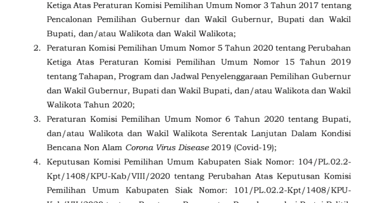 PENCALONAN Pilbup Siak 2020 PENGUMUMAN PENDAFTARAN PASLON TTD