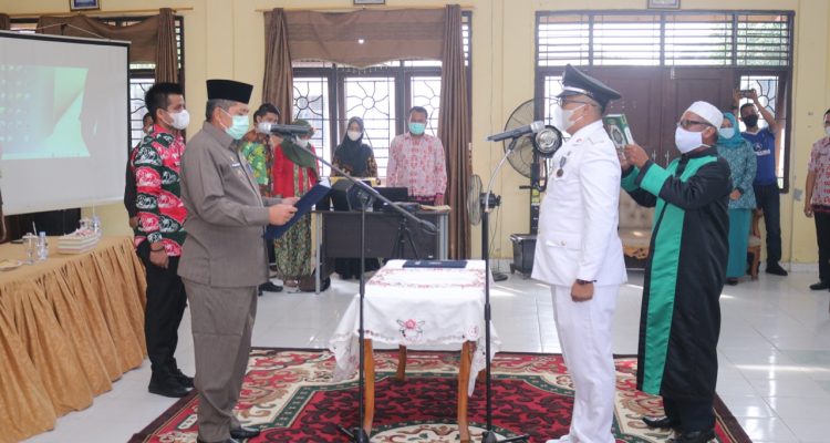 KOTO GASIB-Bupati Siak Alfedri melantik Penjabat Penghulu Kampung Sri Gemilang kecamatan Koto Gasib, di Aula