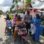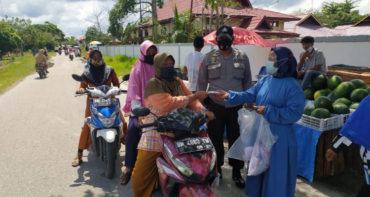 BUNGA RAYA-Sebanyak 500 masker dibagikan oleh puskesmas bunga raya dan bekerjasama dengan polsek Bunga