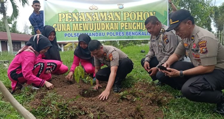 DURI-Dalam menfaatkan perkarangan dilingkungan perkantoran Polsek Mandau agar tetap hijau, Personil dan Kapolsek Mandau Kompol