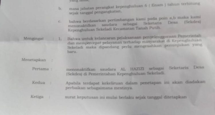 Baganbatu — Persatuan Perangkat Desa Indonesia Propinsi Riau (PPDI Riau) menyesalkan pemberhentian sepihak sekretaris kepenghuluan